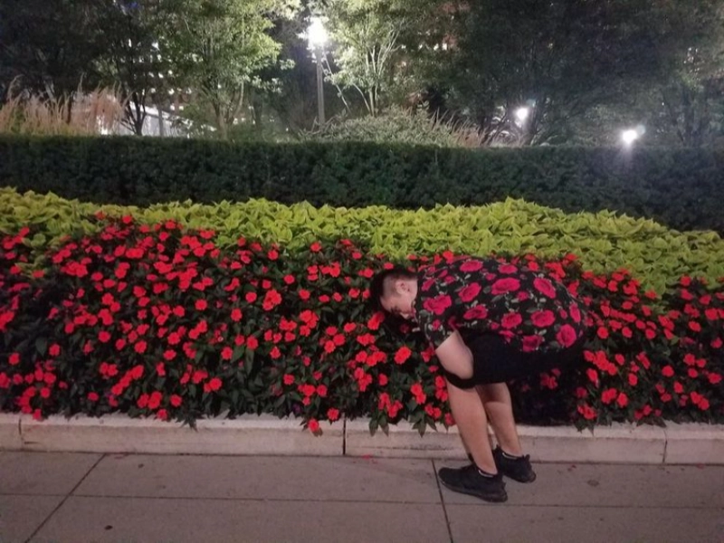 Just missing floral print pants. The outfit almost completes the illusion, but one detail pops, adding gentle humor. Imperfection makes the moment memorable—and often more delightful.