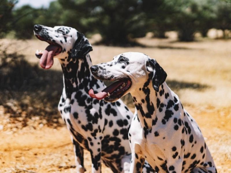 The Dalmatian is a medium-sized breed known for a white coat with black or brown spots. Often seen on fire trucks, Dalmatians need thorough training. They can be cheerful and friendly, but without control may become dominant. Protective and loyal to their people, they may seem threatening to strangers at first. With proper care, they can be guardians, companions, and playmates.