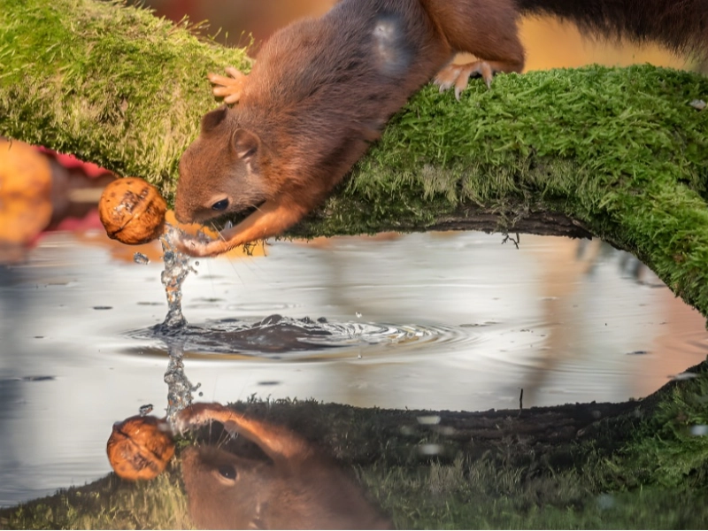 She rinses her nut before eating—what a clever girl. This charming scene shows a bright animal—likely a raccoon or an intelligent primate—washing food at a stream or bowl. The behavior feels almost human, revealing dexterity and problem-solving. Timed just right, the image turns a simple routine into a delightful lesson in cognition and the surprising parallels between us and them.