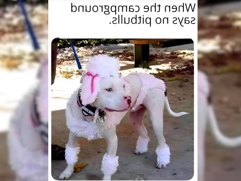 Though pitbulls are often restricted in many places, they can be affectionate and fun pets. This unique photo shows a pitbull dressed in a fluffy pink bikini, catching the attention of dog lovers everywhere.