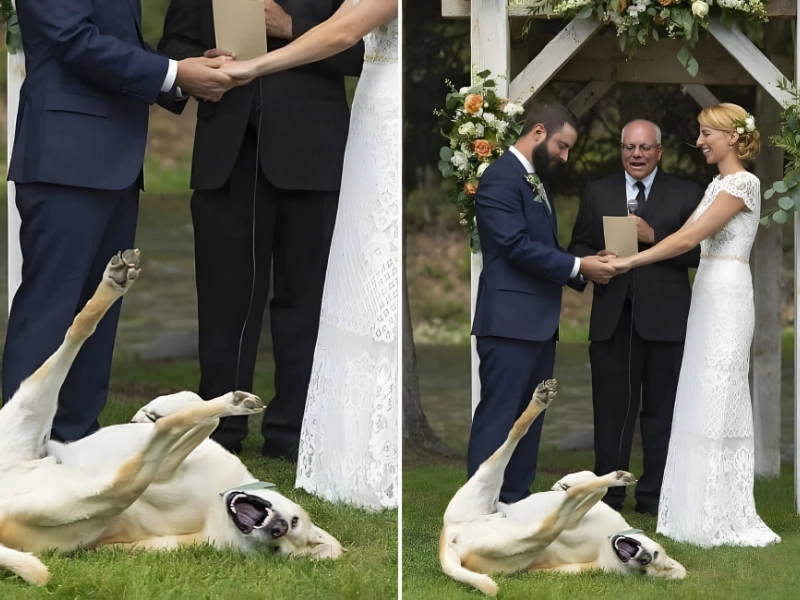 可能性のあるカメラ: Fujifilm X-S10 購入場所: Fujifilm、Amazon 平均価格: 1,000ドル* 結婚式は優雅な催しですが、時折四本足のゲストが主役の座を奪います。他の皆が正装して振る舞っている間、この犬は転げ回って、形式的なイベントに完全に気づいていません。