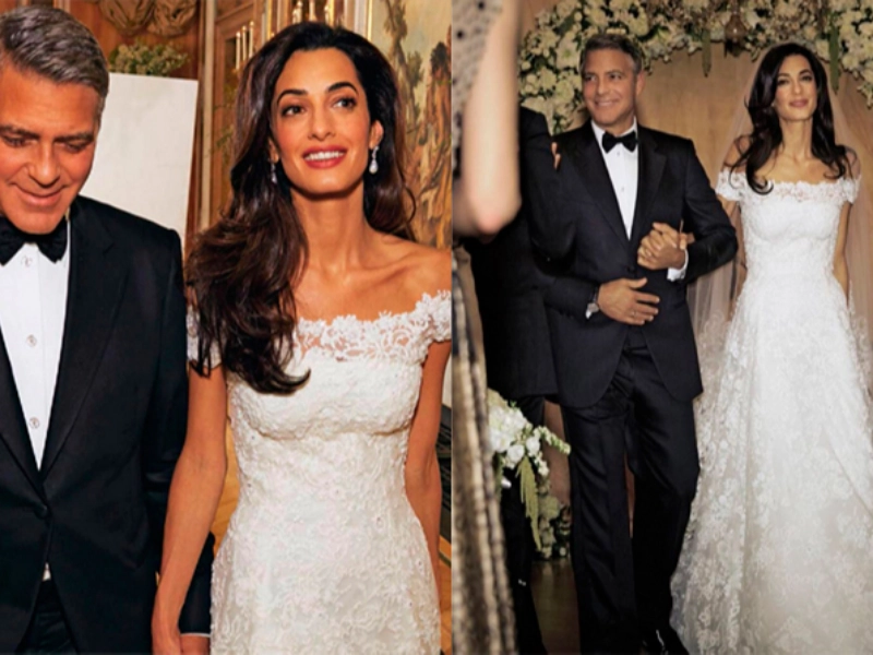 アマル・アラムディン(現在のアマル・クルーニー)は、約40万ドルと評価されるオスカー・デ・ラ・レンタのガウンを着用しました。ドレスの息をのむようなレースと優雅なシルエットが洗練さを具現化し、ブライダルファッションの新たな基準を設定しました。