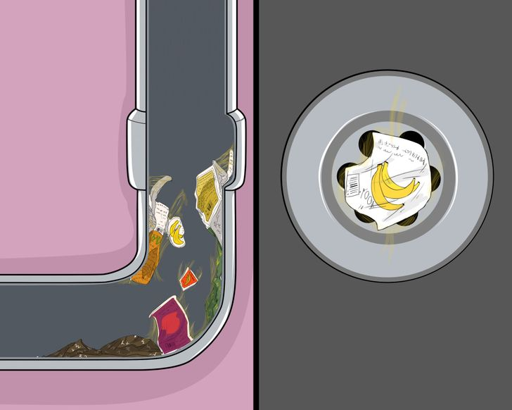 多くの人々がフルーツや瓶の小さなシールを見落とし、無害だと考えています。しかし、これらは排水口ではなくゴミ箱に捨てるべきです。小さなシールでさえも配管に大きな問題を引き起こす可能性があります。