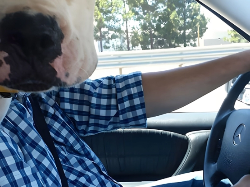 この犬は運転を学んでいるのか、それとも飼い主を仕事に送迎しているのかのどちらかです。他にどんな才能があるのでしょうか?彼のルックはぴったりです—彼の服さえも彼の目にマッチしています。これは私たち全員が渋滞に巻き込まれたときに作る顔です。