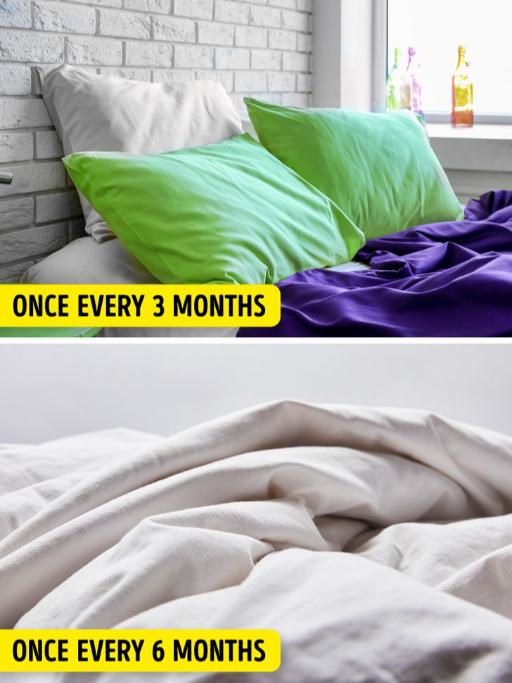 枕は皮脂、髪、汚れを集めるため、真菌やダニの温床になる可能性があります。3か月ごとに枕を洗浄しましょう、特に保護カバーを使用している場合は、カバーは少なくとも月1回洗濯すべきです。