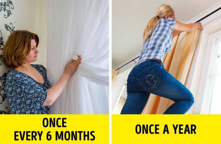 チュールカーテンはより早くほこりを集めるため、6か月ごとに洗濯すべきです。キッチンや他の汚れが早くたまりやすいエリアでは、清潔さを確保するためより頻繁に洗濯しましょう。