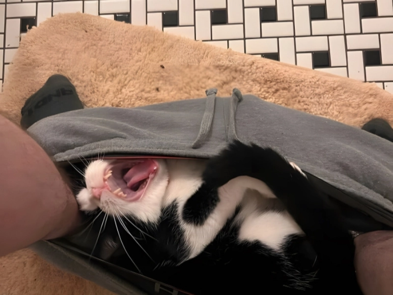 すべての猫は独自の独特の癖を持っていますが、これは抜きん出ています。あなたの足元に横たわる代わりに、それはあなたのパンツの中に巣くうことを好み、それらを即席のハンモックに変えます。猫の心を通り抜けるものを告げることはできませんが、快適さと創造性は常にリストの上位にあります。