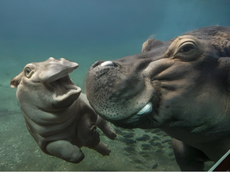 カバの母親とその子の間の絆には、否定できないほど心動かされるものがあります。この心温まる写真では、そのペアが優しい一緒にいる瞬間に捉えられており、彼らの巨大な体は愛情と安全のジェスチャーで接近して押し合っています。母親の保護的な存在と子の信頼は、家族愛の感動的な肖像画を作り出します。その大きさと強さにもかかわらず、カバは深く社会的な動物であり、彼らの関係は触れ合い、コミュニケーション、そしてケアに基づいて構築されています。この画像は、私たちに見かけを超えて見るよう招き、最も恐ろしい生き物でさえ存在する優しさを理解するよう促します。