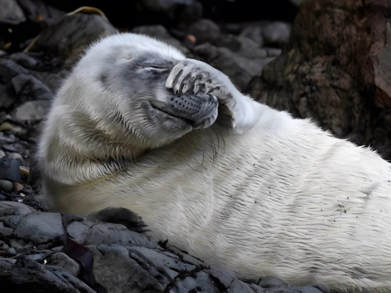 アザラシはその遊び心と表情豊かな顔で知られていますが、この一匹は写真家から褒められた後、特に照れているように見えます。そのぎこちない、ほとんど恥ずかしそうな反応は、愛らしくもあり親しみやすくもあり、どうやって注意を扱えばいいかよくわからないかのようです。アザラシの個性はこのありのままの瞬間に輝き、動物も人間のように幅広い感情と反応を持つことを思い出させます。この楽しい写真は、野生生物を単なる被写体としてではなく、感情、癖、そして独自の物語を持つ個人として見るよう私たちを促します。