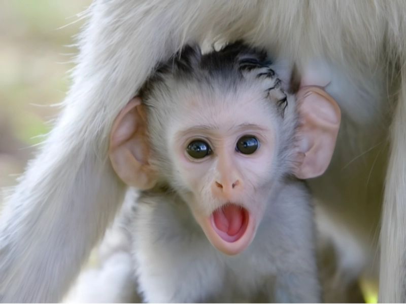 驚かされたこの小さなチンパンジーの大きく見開かれた目の表情は、陽気でありながらも愛らしいものです。若者がそのクローズアップに完全に準備ができていなかったかのようで、個性と魅力に満ちた肖像画をもたらしました。チンパンジーは好奇心、遊び心、そしていたずらに陥るコツを含め、人間と多くの特徴を共有しています。この写真は動物界の子供時代の本質——発見、驚嘆、そして時折の予期せぬ冒険の時——を捉えています。この画像を通して、私たちはすべての若い生き物を結びつける喜びと無邪気さを思い出させられます。