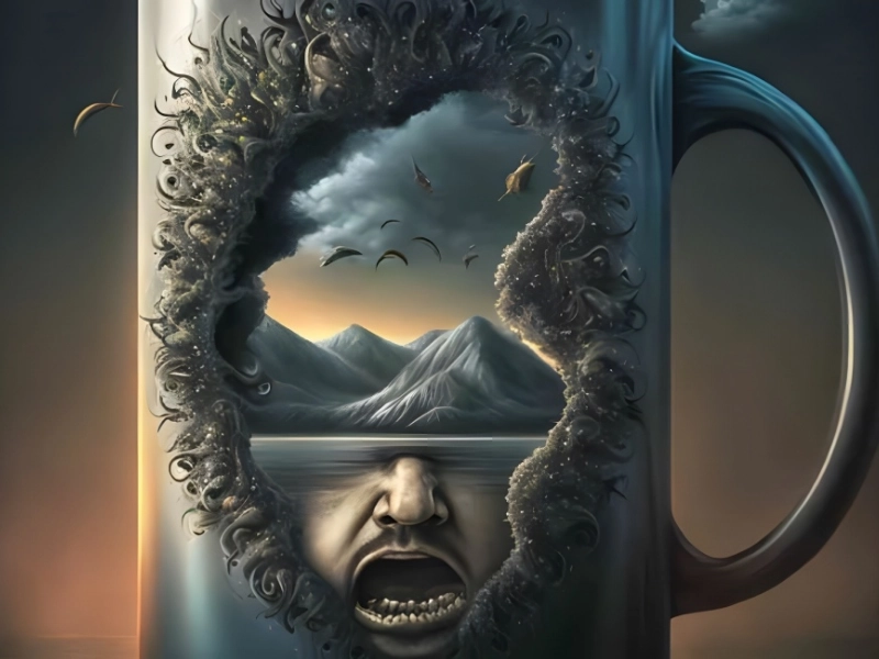 r/Midjourney より提供 使用アプリ: Midjourney 朝のコーヒーをシュールな風景と一緒に楽しみたいと思いませんか? AI アートならそれが可能です。おそらく今キッチンの戸棚にあるような、ありふれた大きなコーヒーカップが、この画像の外側の「フレーム」になっています。