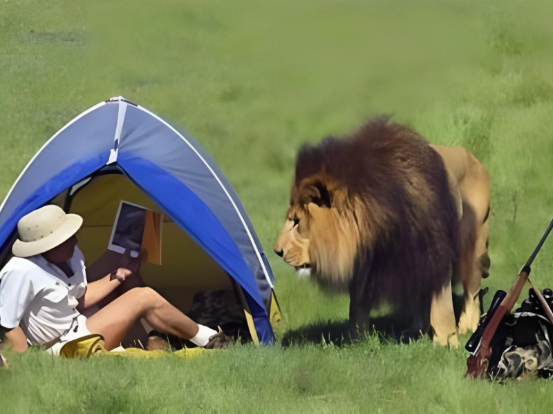 候補となるカメラ: Sony A9 II 購入場所: Best Buy 平均価格: $4,500* この写真家は間違いなく、自分たちがライオンの急襲の標的にならなかったことが幸いであると数えていました。このハンター(スコープを装備したライフルに基づく私たちの推測)は、ライオンが最後に笑ったとき、テントの中で横たわっていました。